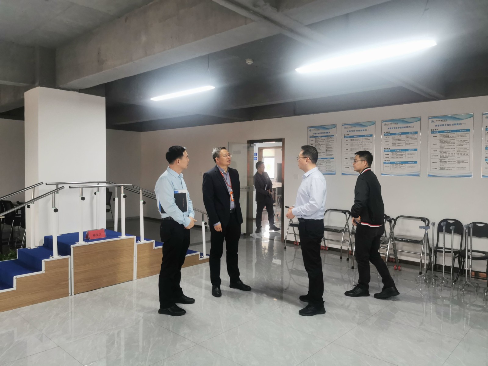 到访领导参观了广西半岛(中国)一站式服务平台及旗下两家子公司广西欢派家庭服务有限公司、南宁市八桂管家职业技能培训学校的办公环境、理论及实训教室,并详细询问了各业务运行发展情况。